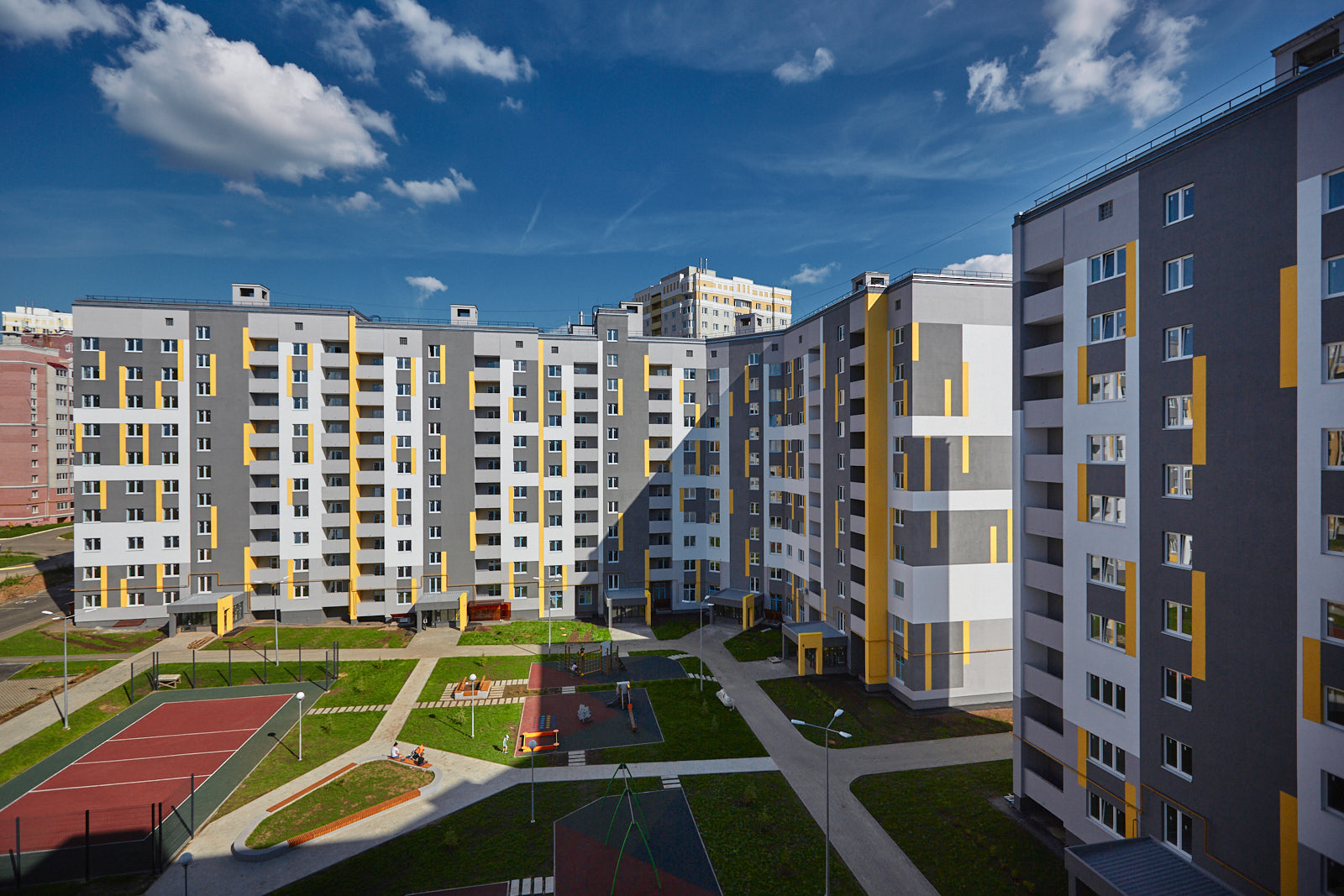 Дворы в VERIZINO life мы постарались сделать максимально безопасными и экологичными, используя технологию "дворы без машин". Это значит, что во дворе дома нет дорог для автомобилей, все зоны являются пешеходными и прогулочными, много зон для игр и занятий спортом (причем в каждом дворе свои элементы), а все парковки расположены с внешней стороны домов.