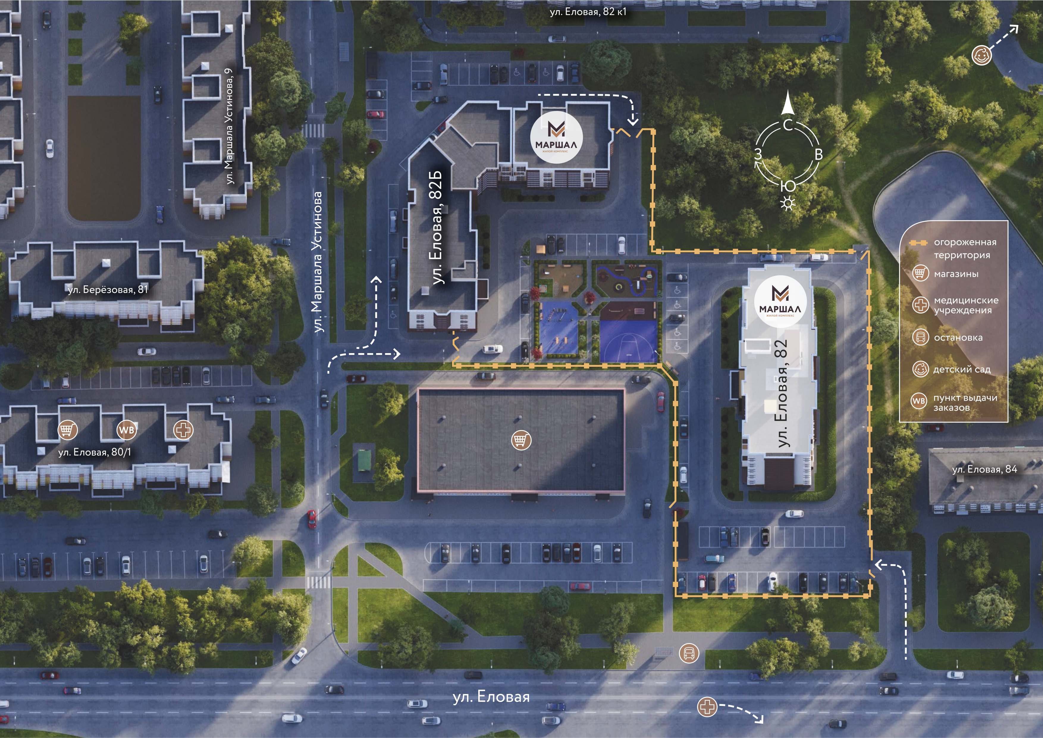 Мы рады объявить о старте продаж квартир в новом жилом комплексе МАРШАЛ, расположенном в удобной и перспективной точке города Коврова — на пересечении улиц Еловой и Маршала Устинова.
