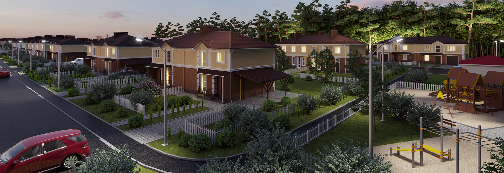 В любом случае вы получаете теплую двухэтажную квартиру с панорамным остеклением на лестнице, высокими потолками свыше 4 метров, огороженную территорию собственного участка от 4 до 7,5 соток и даже персональную парковку.